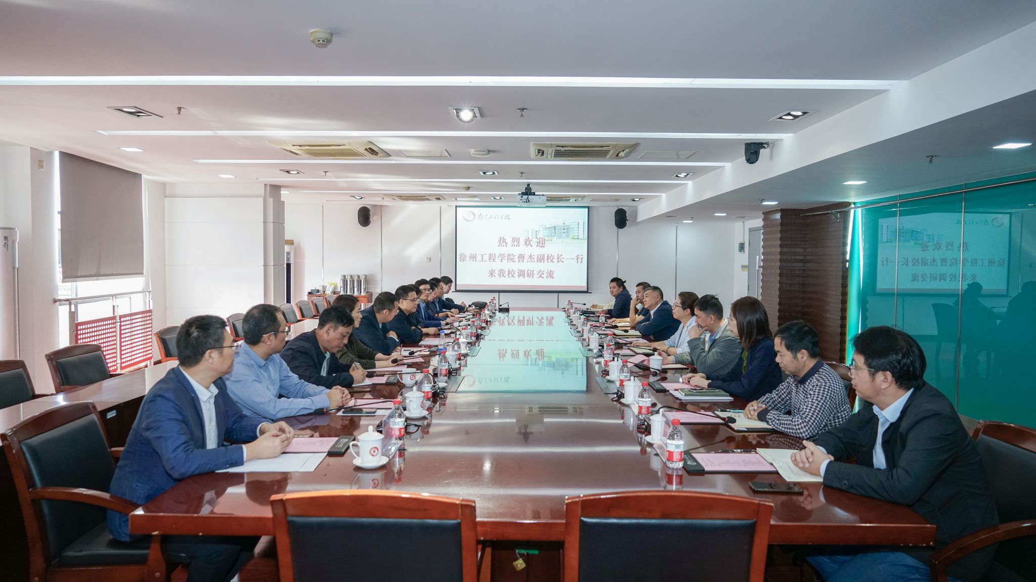 10月26日至27日,徐州凯发、兰州工业学院副校长曹杰、李贵山先后带队来我校走访调研,我校党委常委、副校长朱松青在至勤楼·行政北楼303会议室热情接待了来宾并座谈。