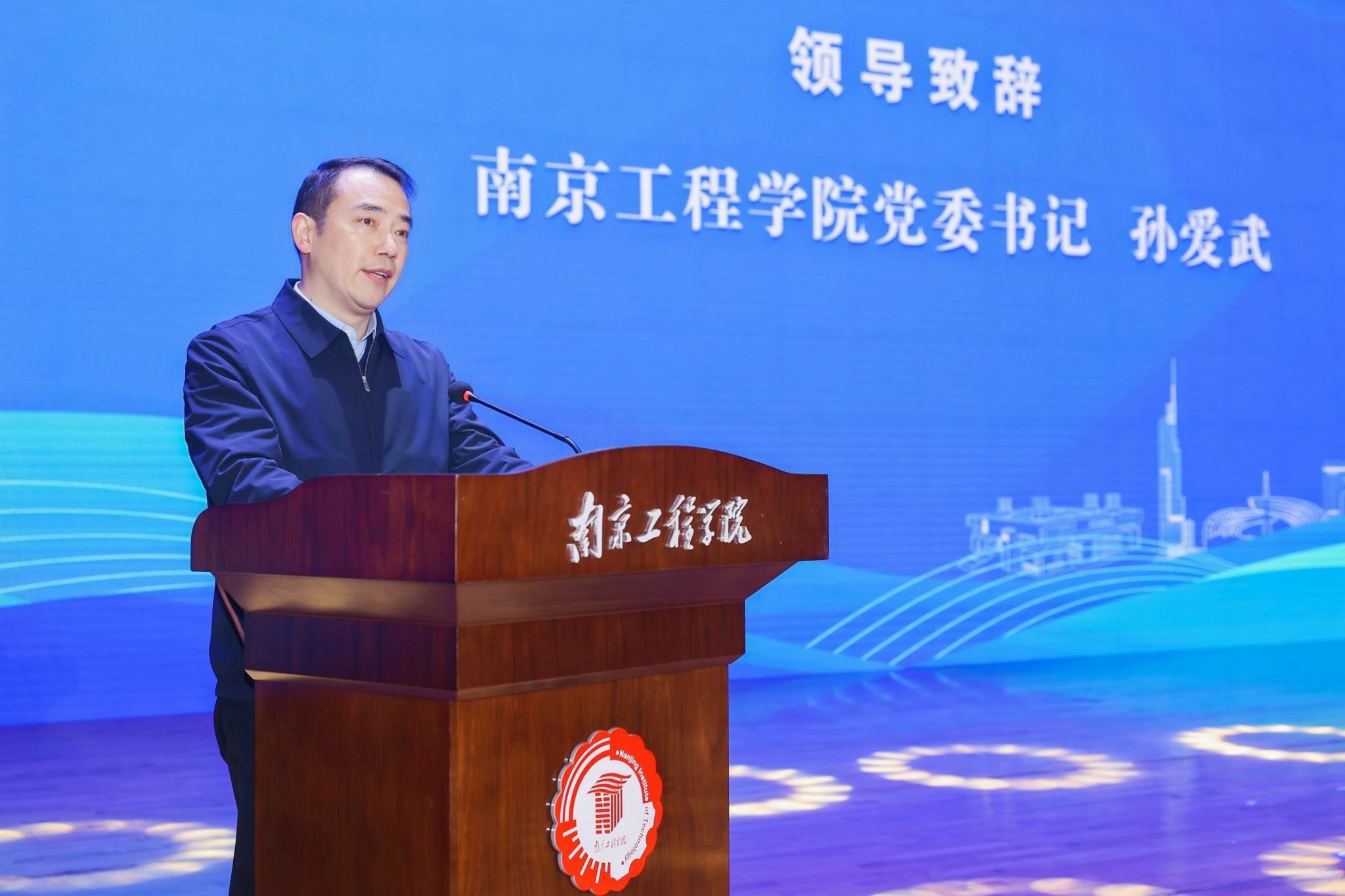 孙爱武代表全校师生员工对出席大会的各级领导、嘉宾以及社会各界朋友表示热烈欢迎和衷心感谢。他指出,凯发自入驻江宁以来,始终坚持“地方性、应用型、高水平、国际化”的办学定位,大力推进产教融合、科教融汇,校地合作成效显著,协同育人能力明显增强,科技合作成果丰硕,科技赋能区域高质量发展。他表示,南工程正以第四次党代会精神为引领,启动实施一流应用型大学建设“登峰计划”,全面提升凯发综合实力和核心竞争力。凯发将进一步加强与南京、江宁的深度融合,实现名城名校“双向奔赴”,在打造现代产业、科技创新等方面同向同行,为推进中国式现代化江苏新实践做出更大贡献。