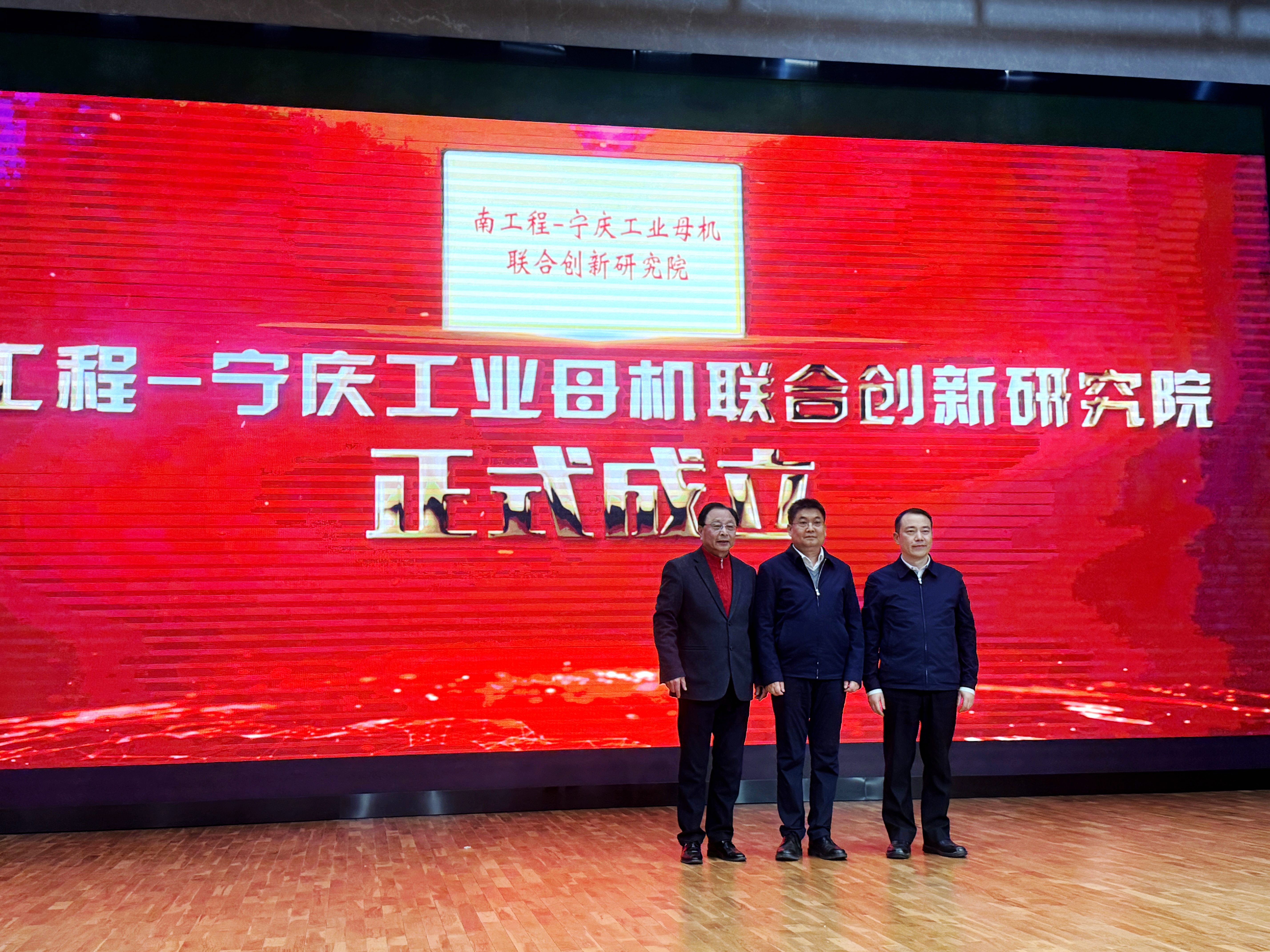 会上,孙爱武、毛予锋和南京宁庆数控机床制造有限公司董事长蔡国庆共同为南工程-宁庆工业母机联合创新研究院揭牌。