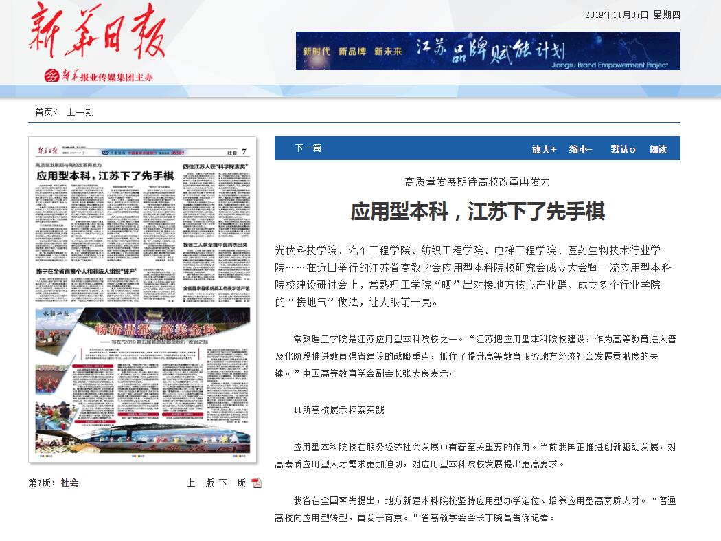 常熟理工学院是江苏应用型本科院校之一。“江苏把应用型本科院校建设,作为高等教育进入普及化阶段推进教育强省建设的战略重点,抓住了提升高等教育服务地方经济社会发展贡献度的关键。”中国高等教育学会副会长张大良表示。