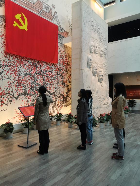 在陈列馆,全体党员佩戴党员徽章,面对鲜红党旗,以饱满的精神状态、洪亮的声音重温入党誓词,重读《入党志愿书》,表明了为党的事业奋斗终身的坚强决心。全体党员参观了陈列馆、中共代表团办事处旧址内展示的文献资料、历史照片及部分实物资料,馆内资料再现了周恩来总理领导的中共代表团不顾个人安危、勇于担当、殚精竭虑为党工作的无私品格,大家被革命先烈们不忘初心、坚持信仰、大公无私、勇于担当的崇高精神所深深感染。