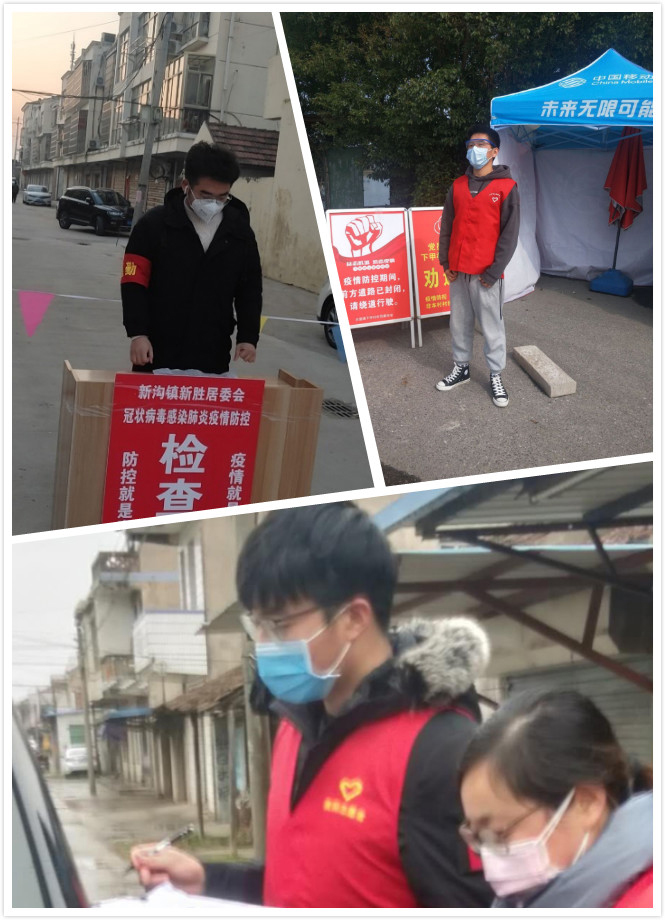 “爸,我也去,我是一名入党积极分子,这个时候就应该挺身而出。”D自集成182班毛鑫隆这样对父亲说,其父亲是阜宁县新沟镇一名工作人员,从大年三十接到任务后,一直在工作岗位,毛鑫隆深受鼓舞,他主动加入到志愿者的队伍中,主要负责在村出入口设卡登记,测量体温。从早上七点到下午六点,常常在寒风中一站就是十几个小时,他坚信在党和政府的领导下一定能战胜疫情。D机加工192班肖佳宇、D自集成班192龚豪杰等6名同学也积极加入当地志愿者队伍,为全民抗“疫”贡献着自己的力量。